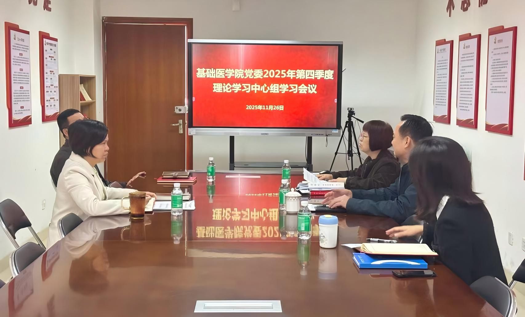 11月26日,基础医学院党委理论学习中心组2025年第5次集体学习会议在番禺校区博学楼A1栋609会议室召开。会议以专题学习党的二十届四中全会精神为核心,同步学习“十五五”规划建议相关内容。会议由学院党委书记尹梅主持,中心组全体成员参会。