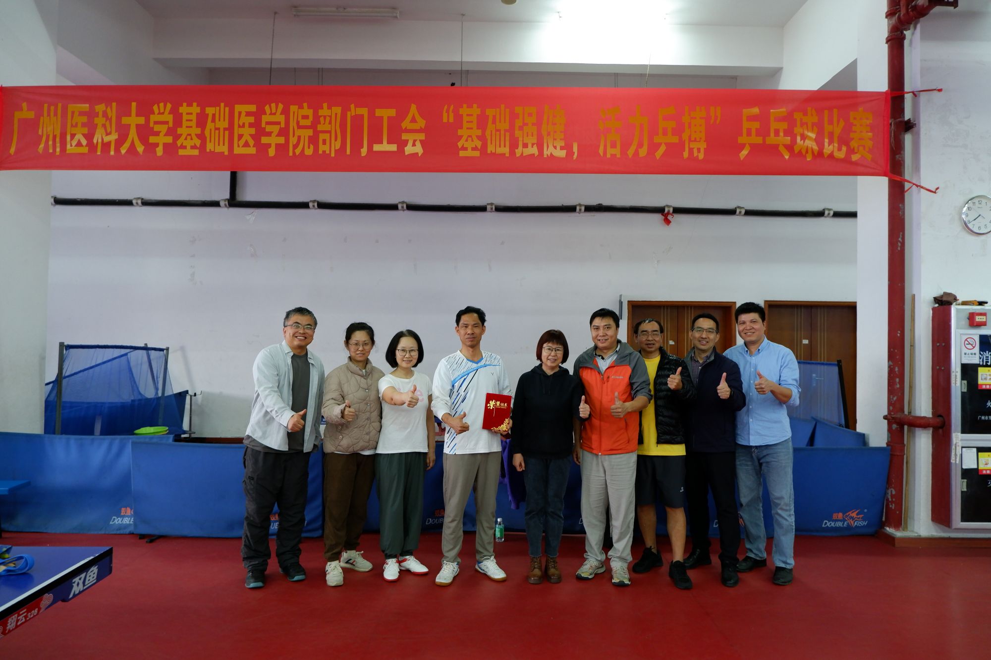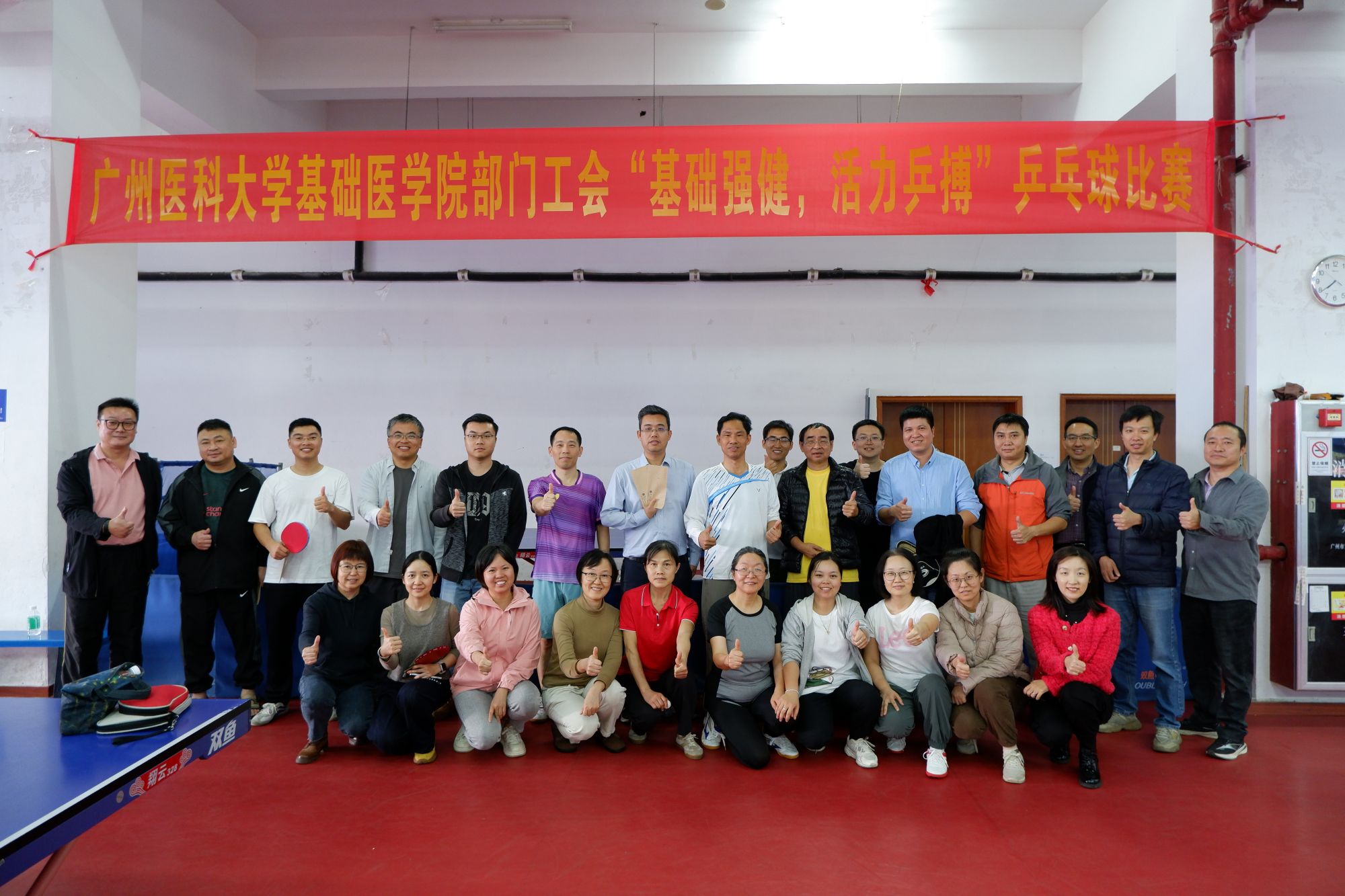 为深入贯彻落实“健康中国”与“全民健身”的国家战略,丰富我院教职工的业余文化生活,增进各学系之间的交流与友谊,营造积极向上、和谐活力的校园文化氛围,广州医科大学基础医学院部门工会于2025年11月至12月举办了“基础强健,活力乒搏”教职工乒乓球比赛。