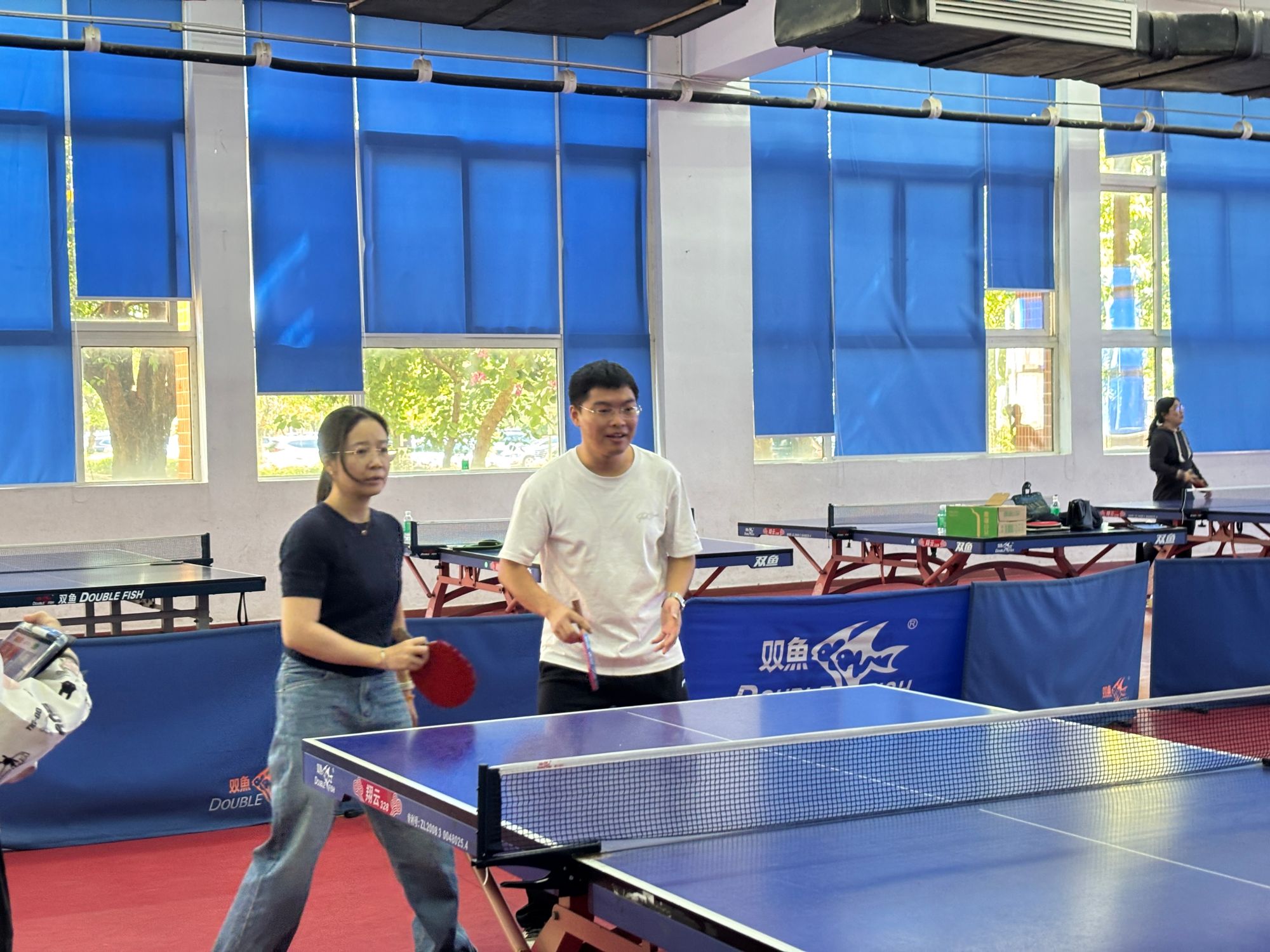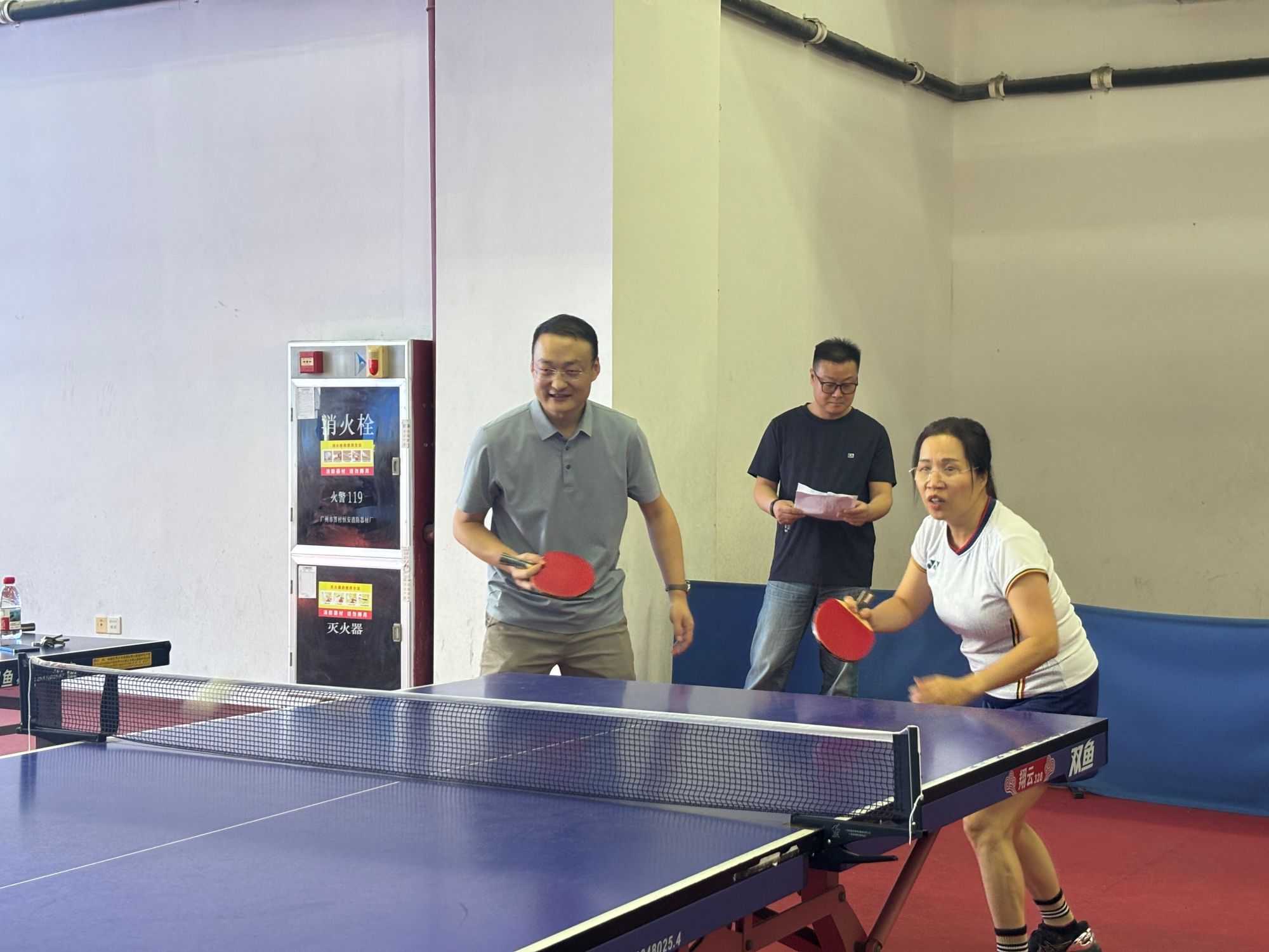 在比赛前期,学院部门工会积极筹备,贴心做好各项服务工作。特别邀请第十工会小组长陈炜老师出任教练,悉心指导参赛队员钻研乒乓球技巧。而在比赛进程中,又邀请组织委员王智明老师担任裁判,有条不紊地组织协调学生裁判,赛事得以顺利完成。