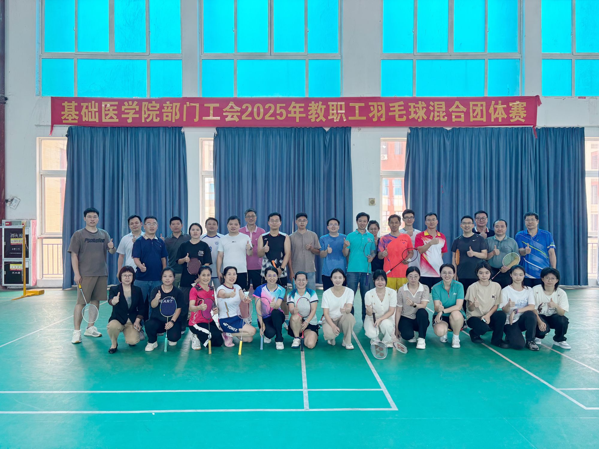 为活跃校园体育文化氛围,提高教职工的身体素质,增进老师之间的友谊,2025年6月,基础医学院部门工会举办了一场别开生面的羽毛球教职工混合团体赛,比赛共有9支参赛队报名参加。比赛秉持着“友谊第一,比赛第二”的理念,选手们青春自信,拉拉队员热情洋溢,现场气氛热烈,欢声笑语不断。