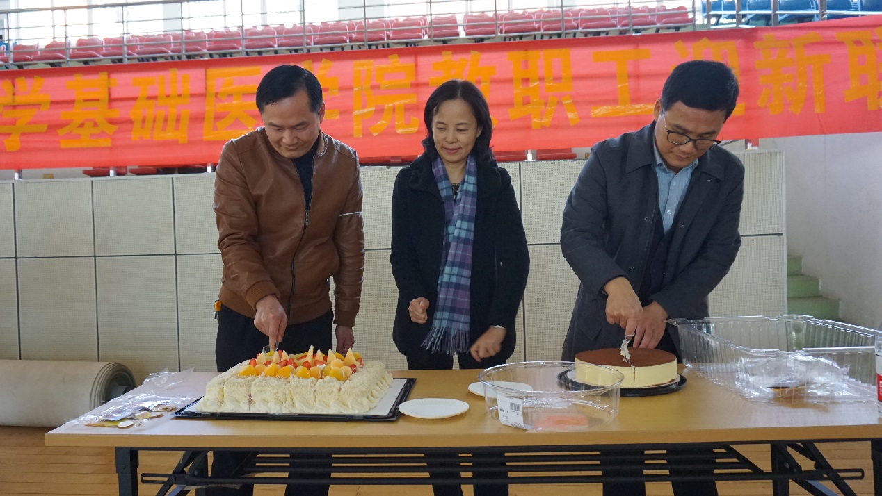 活动伊始,冯卫东副主席代表学校工会致辞,对基础医学院部门工会在2020年度所取得的成绩表示高度肯定,并向全体教职工致以诚挚新年问候和良好祝愿。“迎新联谊”活动以生日会、趣味游戏为主线,通过切生日蛋糕、分享蛋糕等环节,以及抛沙包、踢毽子、跳大绳、套圈圈等趣味活动,让老师们在运动中酣畅淋漓,在交流中再叙友谊,用温情与朝气喜迎新年。