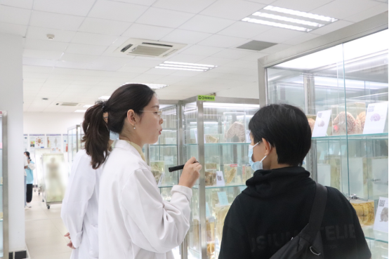 科普活动先由基础医学院人体解剖学教研室武莹莹博士作关于呼吸系统基本知识以及新冠肺炎等呼吸道传染疾病预防知识的讲座,并与科普工作人员现场为大家演示心肺复苏操作要领,指导参观者亲身感受心肺复苏操作。讲座后,大家依次参观全息3D虚拟仿真实验室、遗体捐献纪念馆及人体标本馆,现场工作人员与武博士分别通过3D眼镜体验、现场虚拟操作、大体标本讲解等方式,让来访参观者对呼吸系统的组成和结构有更深入认识,同时也增长了预防呼吸系统相关疾病的知识。点滴科普,引导大众关爱身体、关注健康。