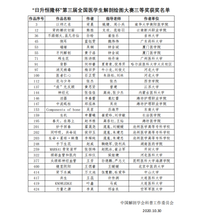 10月30日,由中国解剖学会举办的“日升恒隆杯”第三届全国医学生解剖绘图大赛评审结果正式公布,我院人体解剖学教研室杨丹迪老师所指导学生陈诗琪的参赛作品——《颅生花》获得三等奖。