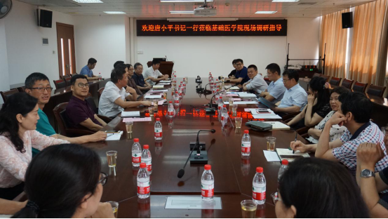 4月2日上午,学校党委书记唐小平、副校长赵醒村和党委办公室、教务处、科研处负责人到基础医学院开展“加强基层党建,大力推进专业内涵建设和特色发展”现场调研。学院领导班子全体成员、各教研室主任参加调研会议。学院党总支书记龙大宏主持会议。